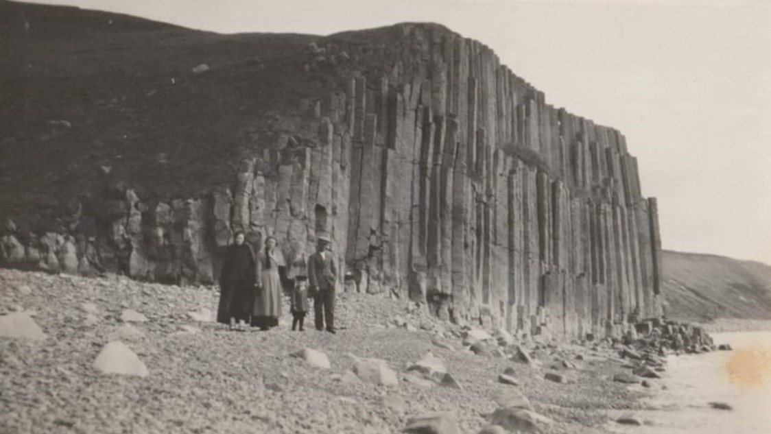 Vonandi er einhver sem heimsækir þessa síðu og getur sagt okkur hvaða fólk sé þarna í Staðarbjargavíkinni, það er mikil breiting á fjörunni frá því þessi mynd er tekin og í dag 2026 þarna er fjarna mikið stærri og fíngerðari möl en nú er.