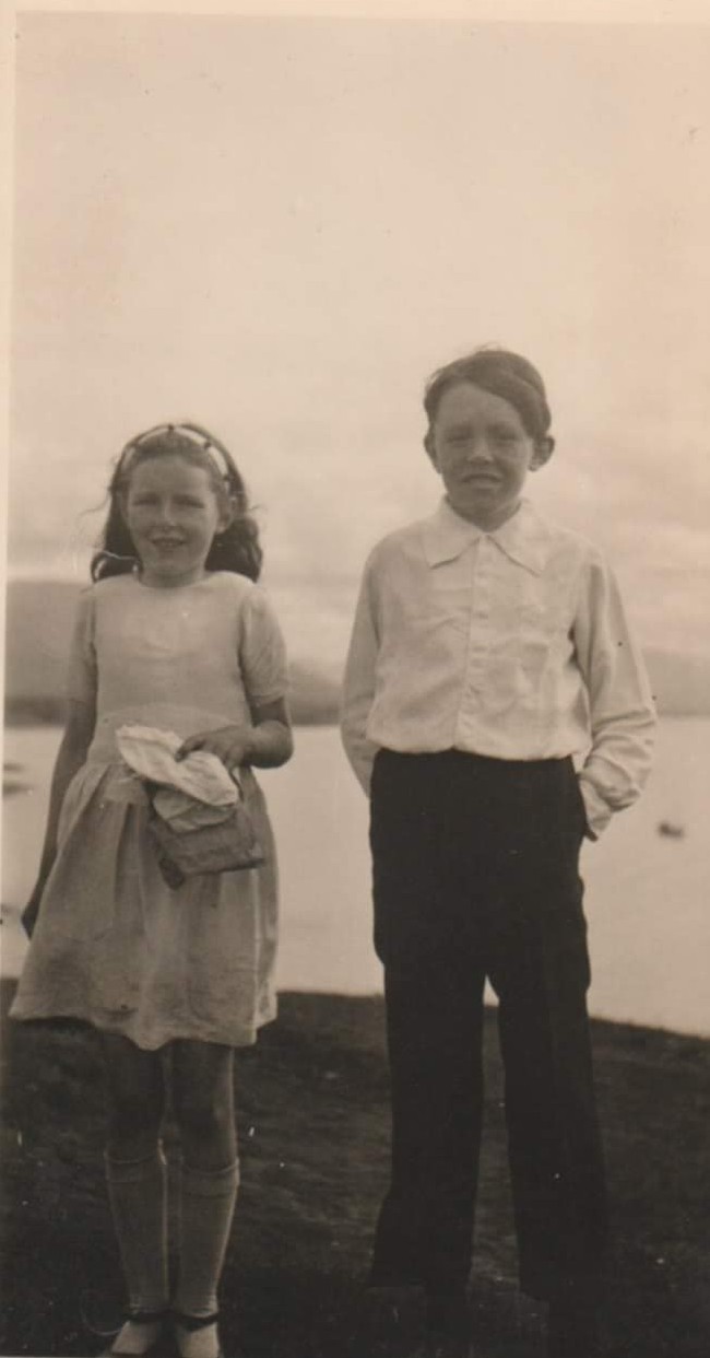Þessi mynd af systkinunum er tekin á bakkanum við Sunnuhvol en það var æskuheimili þeirra.