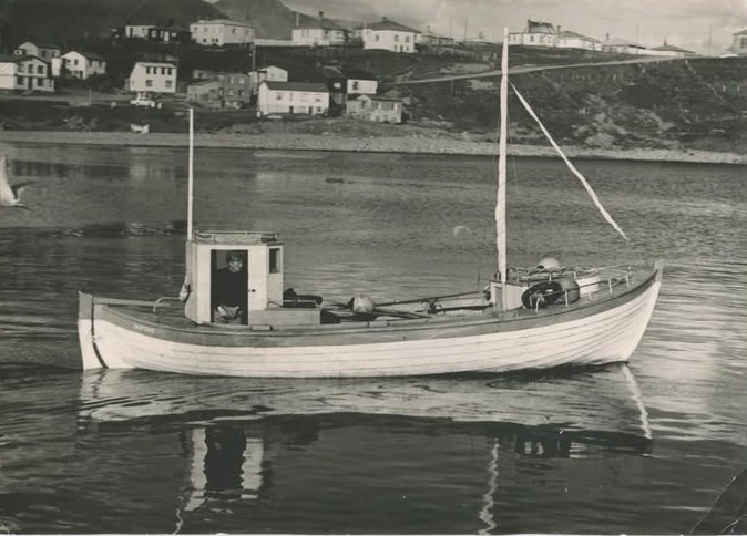 Hér má sjá Mumma Stjána á bátnum Von SK 38 en Vonin var í eigu þeirra feðga í Sæbergi.