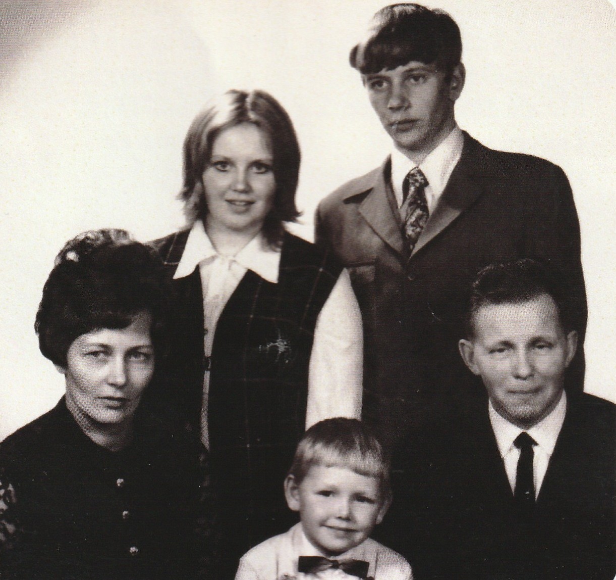 Mynd fengin úr útfaraskrá Möggu Gunnsa. Magga og Gunnsi með börn sín Trausta, Gurrý og Gunnar Heiðar.