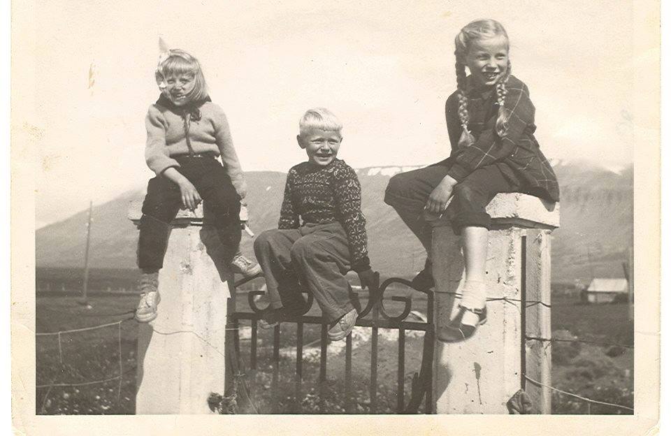 á myndinni eru syskynin Maja og Gestur Þorsteins ennig læknisdóttirin Magga Jóna.