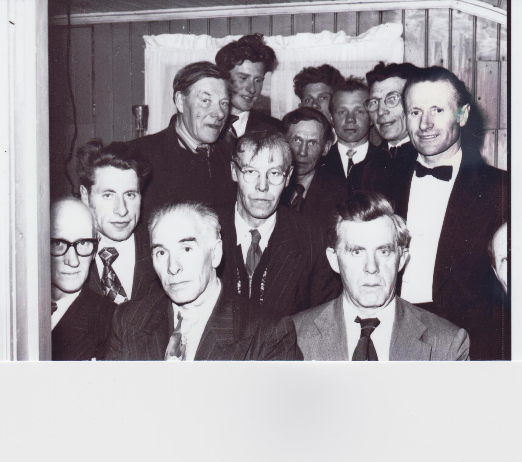 Aftastur er Axel í Litlu-Brekku, veit ekki um hinn, svo koma frá hægri Árni á Hrauni, Bjarni í Hólakoti, Valdi á Þrastastöðum, Sveinbjörn á Ljótsstöðum, og sennilega Sölvi á Hugljótsstöðum. þar fyrir framan eru Dóri á Hóli og mér sýnist Siggi Björns.Fremstir f.v. Björn í Bæ, Óskar á Vatni (sennilega) og Jón á Hofi.