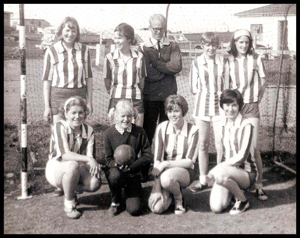 Takk fyrir hjálpina Þórdís. En þessi mynd er tekin eftir leik við Siglfirðinga 1966 eða 67 leikurinn fór þannig ;) Á myndinni eru frá vinstri í efriröð. Anna Pála Þorsteinsdóttir, Kristín Björnsdóttir, Ingimundur Ingimundarsson þjálfari, Fanney Friðbjörnsdóttir, og Anna Steina Guðmundsdóttir. Í neðri röð frá vinstri eru. Helga Friðbjörnsdóttir, Þórdís Friðbjörnsdóttir, Kristbjörg Óladóttir og Sigríður Garðarsdóttir.