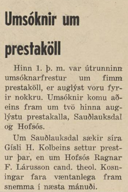 5 prestaköll en umsóknir bárust bara í tvö. Aldrei höfum við heyrt annað en að vel hafi verið látið af Ragnari Fjalari cand.