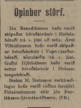Er ekki í dag verið að biðja um að opinber störf séu flutt út á land, við fengum skipaðan héraðslæknir.