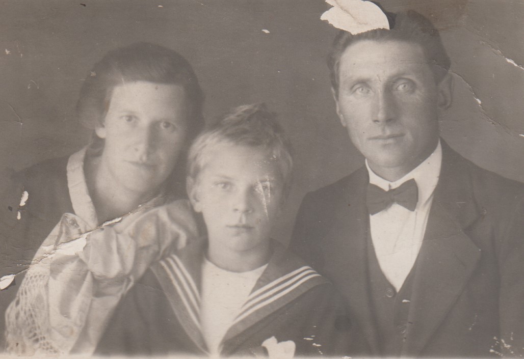 Konan á myndinni er Jóna sem átti Jónubúð, búðin sem var í norður endanum á húsinu Hlíð þarna er hún ásamt Birni Jónssyni útgm. á milli þeirra er Ívar sonur þeirra. Í Jónubúð fékk maður fyrsta sælgætið sitt t.a.m. stóru Freyju karamellurnar. Jóna hét fullu nafni Jónína Ólöf Hermannsdóttir.