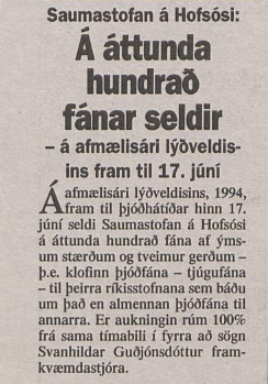800 fánar seldir, það væri gott ef alltaf væri stórafmælisár lýðveldisins.
