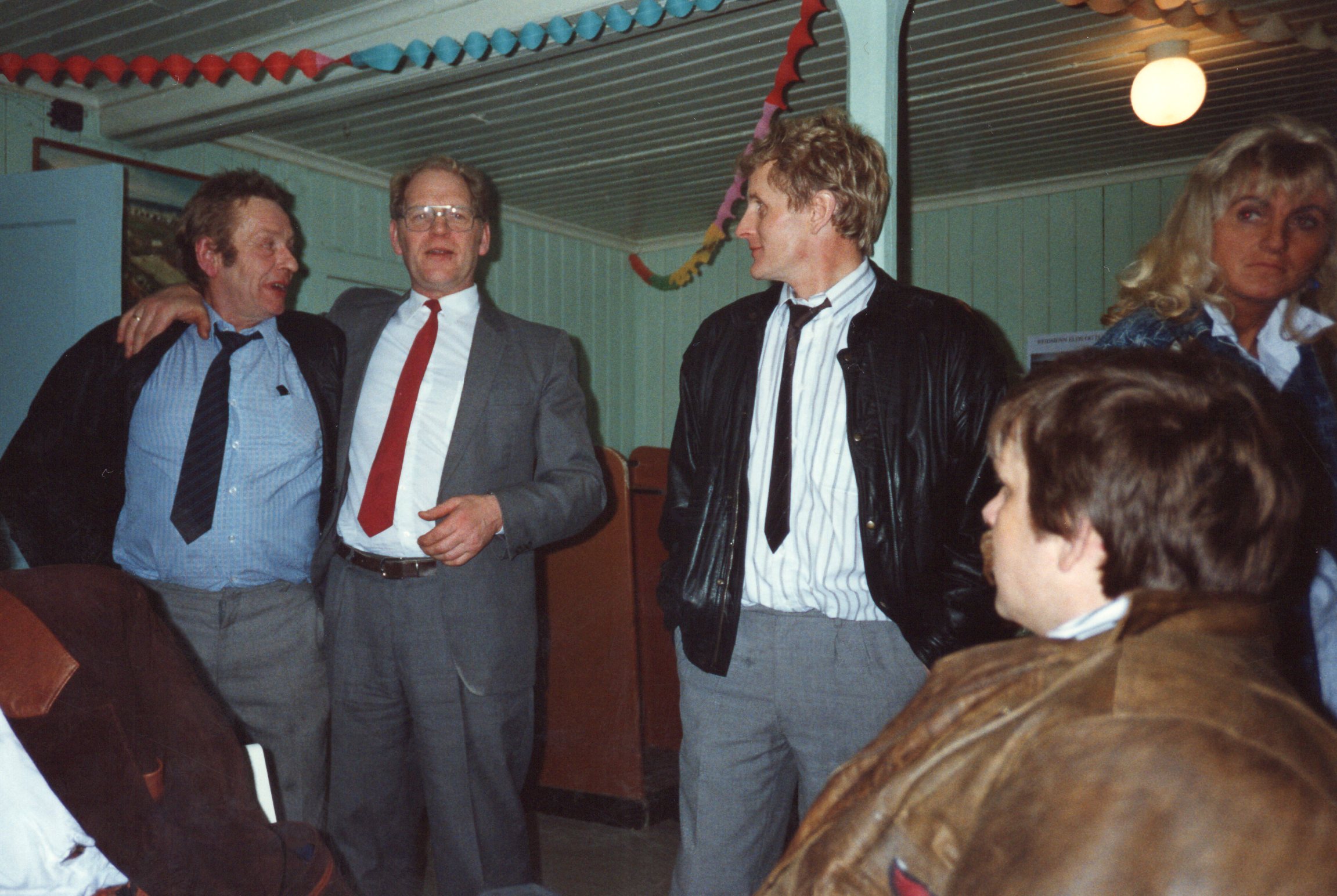Tekið á Hliðarhúsi. Leifur á Miklabæ, Hermann í Lambanesi, Gunnar í Stóragerði, og hjónin Björn Jónasson og Hólmfríður Þórðardóttir, Sróragerði.