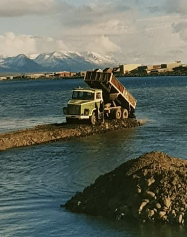 Hér er Geiri á Bakka í hafnargerð á Sauðárkróki á K 200 þetta er bílnúmer sem fylgdi honum alla tíð.
