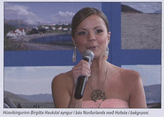 Kannski er þetta tilviljun að þorpið sé í bakgrunninum á þessari mynd, eflaust var ljósmyndarinn bara að taka mynda Birgittu.