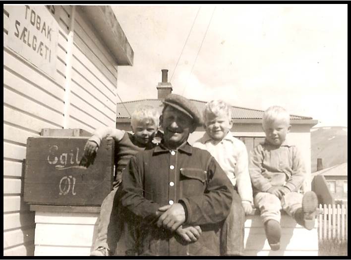 Jói Eiríks með afastrákana Hödda, Halla og Hólmgeir