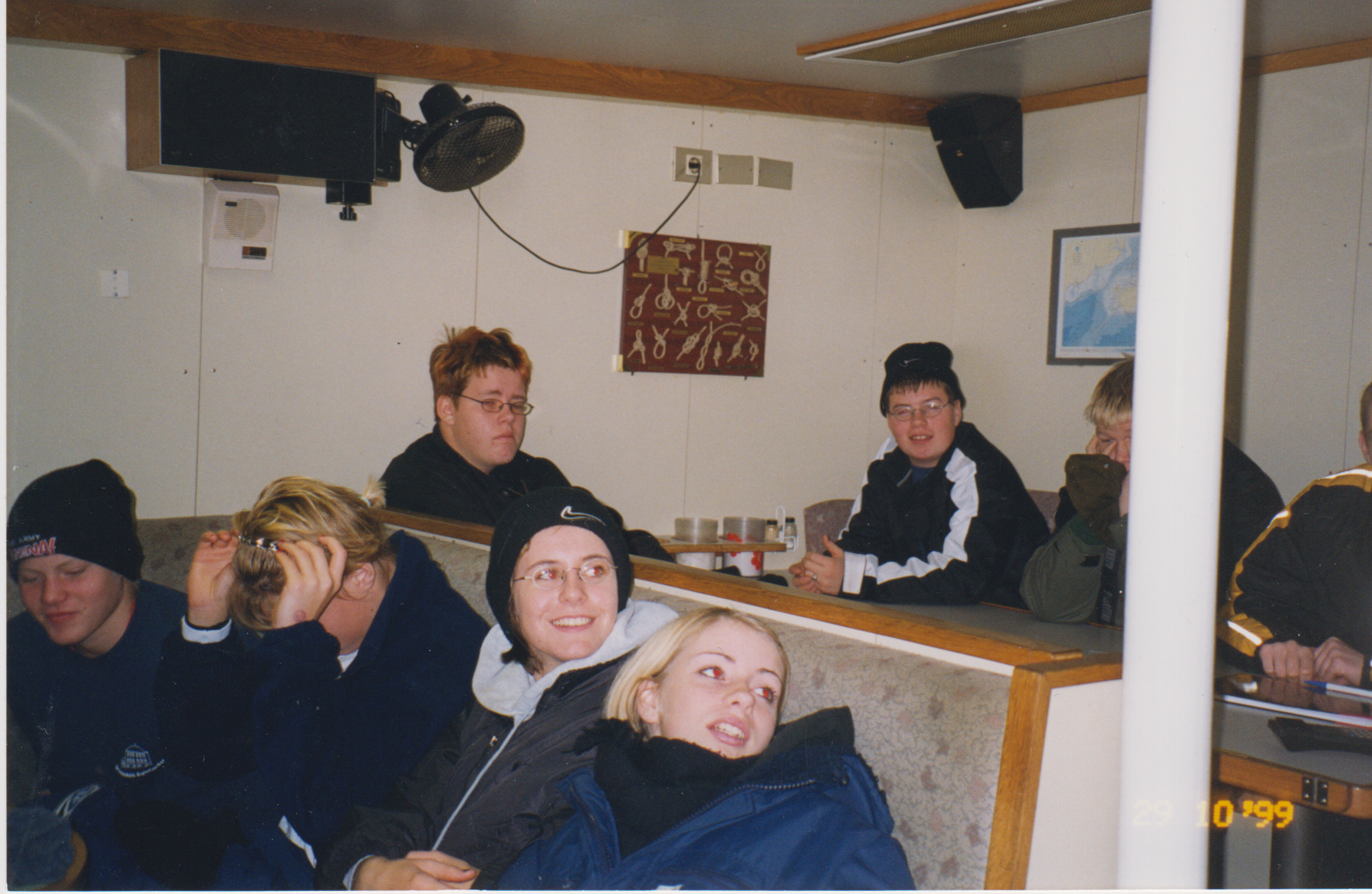Hluti nemenda í borðsal Drafnar, heylsufar misgott á hópnum, það sjóast ekki allir í 1. túr. Nöfn sumra nemanda hafa gleymst.