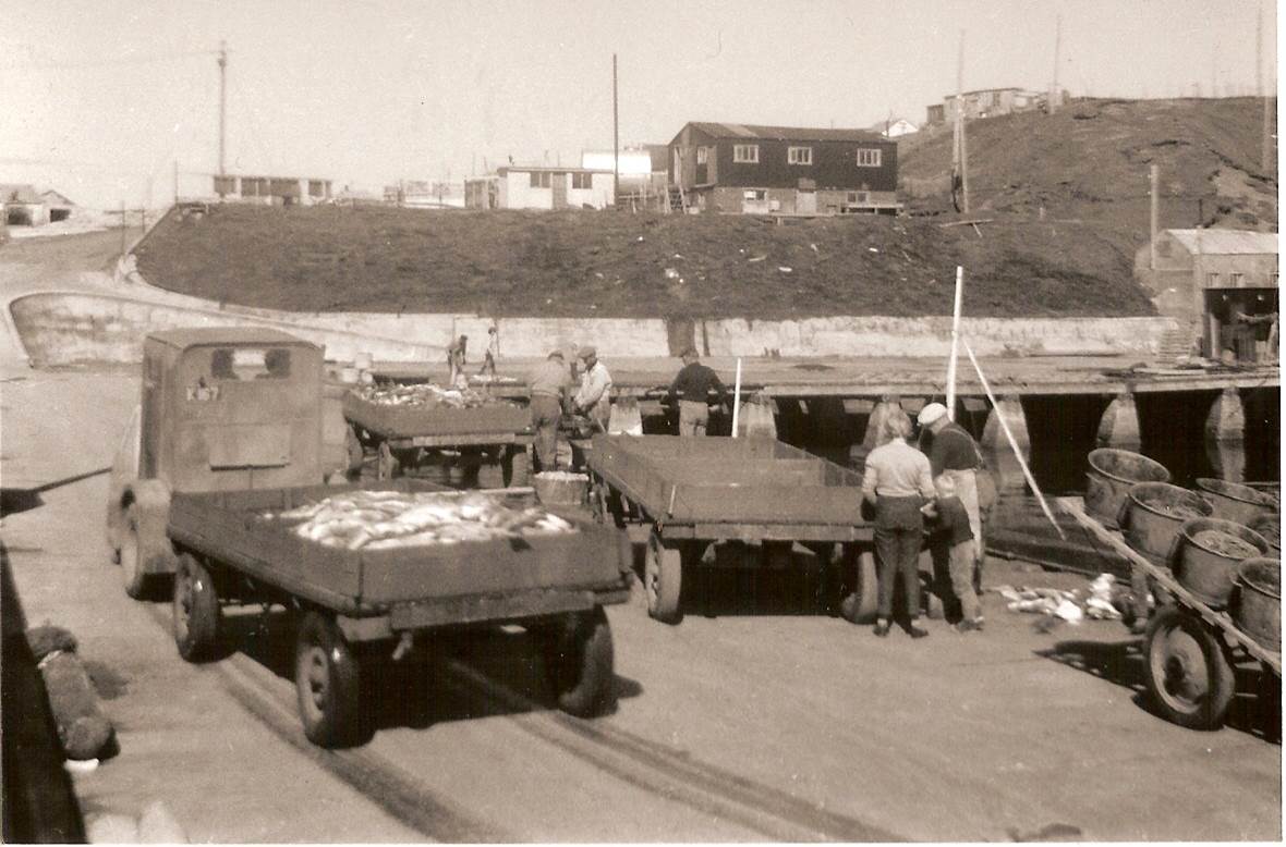 Frystihústíkin dregur vagnana með fiski upp á vigt.