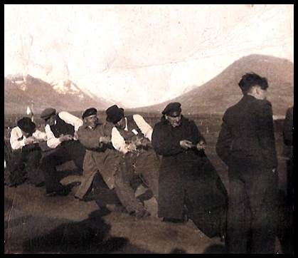 þetta er eflaust fyrsta mynd sem til er af reipitogi í gamla þorpinu.
