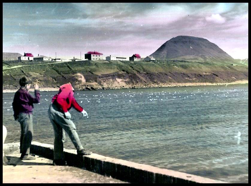 Þessa mynd hirti ég af mánaðardegi, held frá kaupfélaginu sem íbúar gátu fengið sem vildu, þetta er lituð mynd og tekin líklega 1958, vissi aldrei hverjir þarna voru en Svana taldi sig þekkja Inga vegna þess að hann átti svona rauðan jakka, munum í því sambandi að myndin er lituð, þetta var ekki moggamynd.kv.