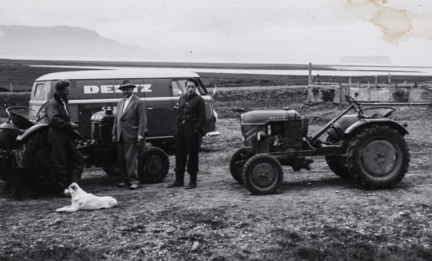 Þessi fer í topp 10 sætið yfir bestu myndirnar, á henni eru Jón í Mýrakoti og Dóri á Hóli eflaust er þarna á ferð sölu eða viðgerðamaður frá DEUTZ umboðinu.