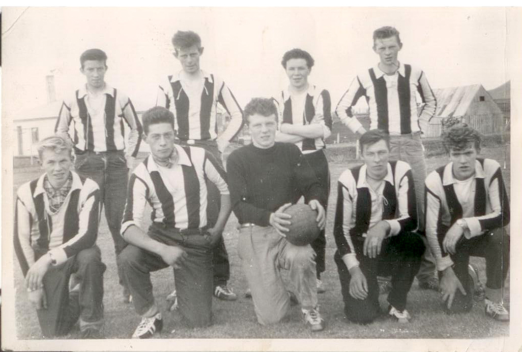 Aftari röð, Bjössi Jóa, Bragi Vill, Palli Pálu, Gísli Kristjáns og í fremri eru Fúsi í Gröf, Tommi í Hjarðarholti, Jón Steinþ. Nonni Gíma og Bjössi Nílla.