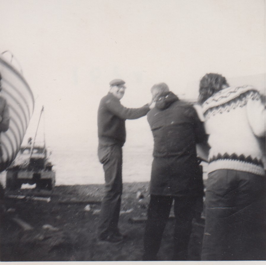 Gími ásamt fleyrum að sjósetja eina af nýsmíðum sínum.