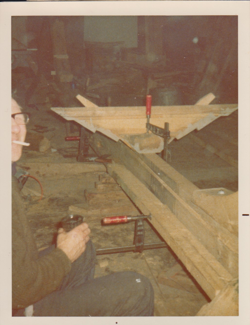Á þessari mynd má sjá Þorgrím / Gíma byrja á einum af svo fjölda báta sem hann smíðaði á sínum ferli