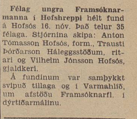 Það hafa nú verið merkismenn kostnir í stjórn ungra framsóknarmanna í Hofshreppi.