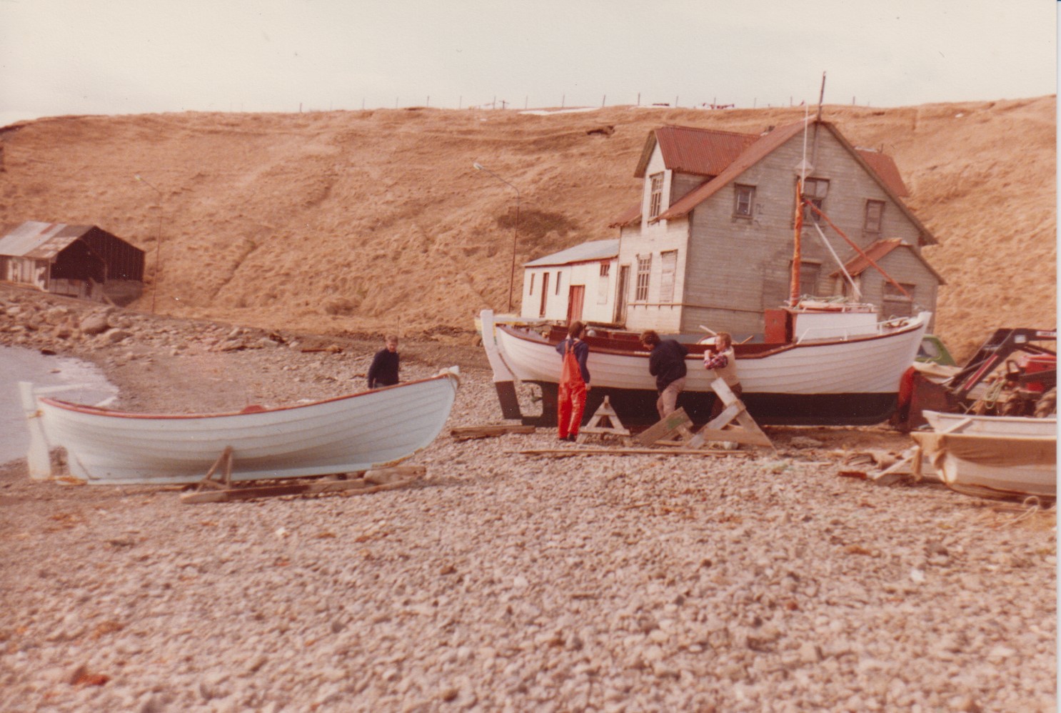 Hérna er verið að sjósetja Blika sem Gími smíðaði fyrir, Kjartan á Tjörnum og Leif á Miklabæ, gárungarnir kölluðu þetta vitaskipið.