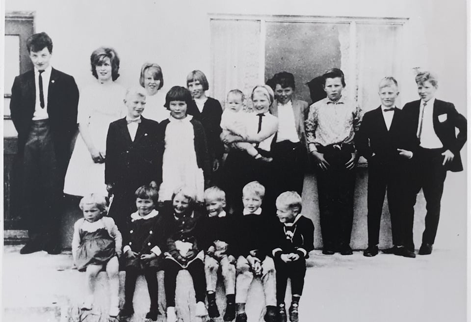 Hér eru afkomendur Guðna og Jóhönnu í Nýjabæ. Síðueigandi þekki Kidda á Grund ég man eftir Eddu kannski stendur hún næst honum, ef ekki væri gaman að fá ummæli með þessari mynd einnig nöfn allra á myndinni.
