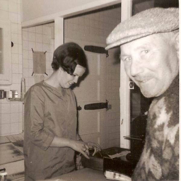 Hér er Stína Björns að afgreiða Stjána í Berlín í kaupfélaginu.