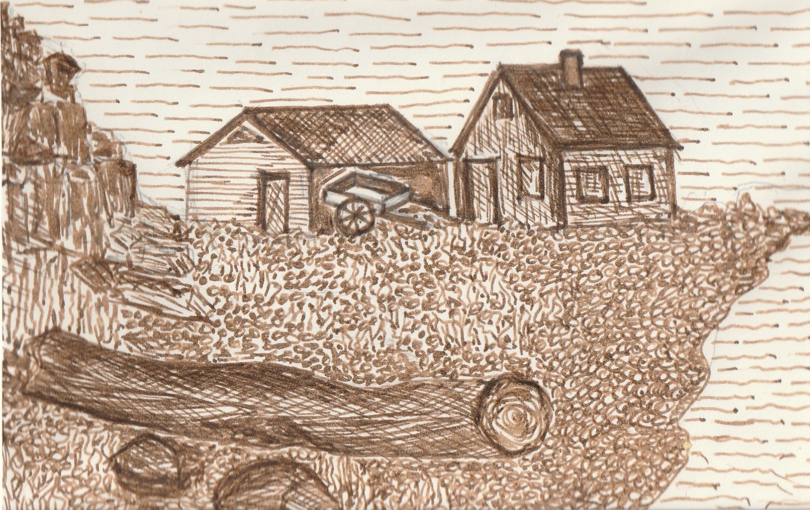 Síðan komst yfir þetta glæsilega verk sem gaman er að geyma og varðveita ekki síst vegna þess að verkið er eftir Hofsósing Valdimar Björnsson Valla í Bjarkalundi en hann var magnaður með blíant og pennsilinn, við getum þess að fyrirmyndin í verkinu sé Naustabærinn og Naustavíkin.