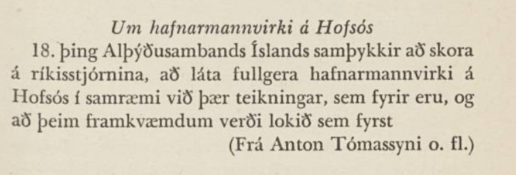 Þetta er frá árinu 1942 þarna er verið að skora á ríkistjórina varðandi hafnarmál, áður vorum við búnir að segja frá lagarsetningu frá Alþingi um hafnarmál, höfnin og þorpið í heild sinni var alltaf í fréttum.