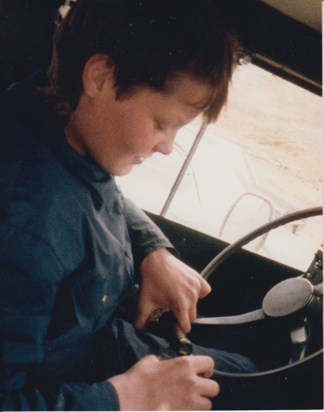 Menn eru ekki neitt að fara undan stýri meðan blandað er, hér er Ómar Pálsson að blanda, kannski fyrir farþegana, kannski fyrir sig. Þetta hefur hann lært á Melstað :)