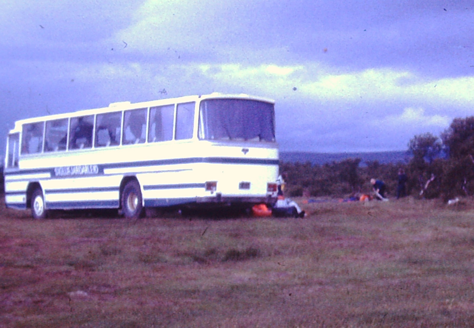 Hér eru nemendur að taka saman tjöldin í skólaferðalagi