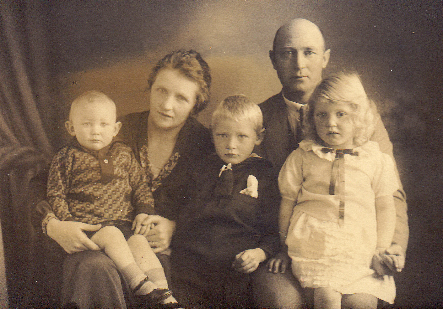 Hallfríður og Vilhelm Baldurshaga með börnin sín. Þarna má sjá son þeirra sem seinna varð prestur í Vatnsfirði sr. Baldur mesti húmoristi allra presta á Íslandi.