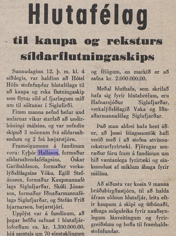 Hróður Hofsósinga má rekja vítt um landið, þegar síldarsaltendur sáu fram á að sækja þurfti sít á fjarlæg mið var réðist í það að kaupa skip til þeirra verka, Eyþór Hallsson fem fæddur er í þorpinu okkar var fengsæll síldarskipstjóri og er einn af frumkvölum um að kaupa skip í þetta verkefni, það eru ófár myndir til og fréttir af síldarbátum vera að landa síld af miðum við Jan Mayen í skipið, Haförn hét þetta síldarskip, auðvita kom Hofsósingur þar við sögu.