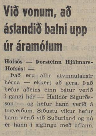 Það fór ekki allur aflinn af Halldóri Sigurðssyni inn í frystyrhúsið, eins og fram kom hjá Þórsteini símstöðvarstjóra og fréttaritara, þarna er frétt af siglingu hjá Haldóri eflaust var siglt til þess að auka afkomu útgerðarinnar, okkur guttunum þótti mikið til koma þegar báturinn kom úr þessari söluferð til Grimsby, vegna Mackintosh nammi sem við fegum hjá körlunum á bátnum, við þorpararnir eigum einn sem ætti að muna vel eftir þessari siglinu þar sem Palli Pálu var stýrimaður á Halldóri, það væri gaman að fá einhverja sögu af þessum siglingum Halldórs Sig SK 3