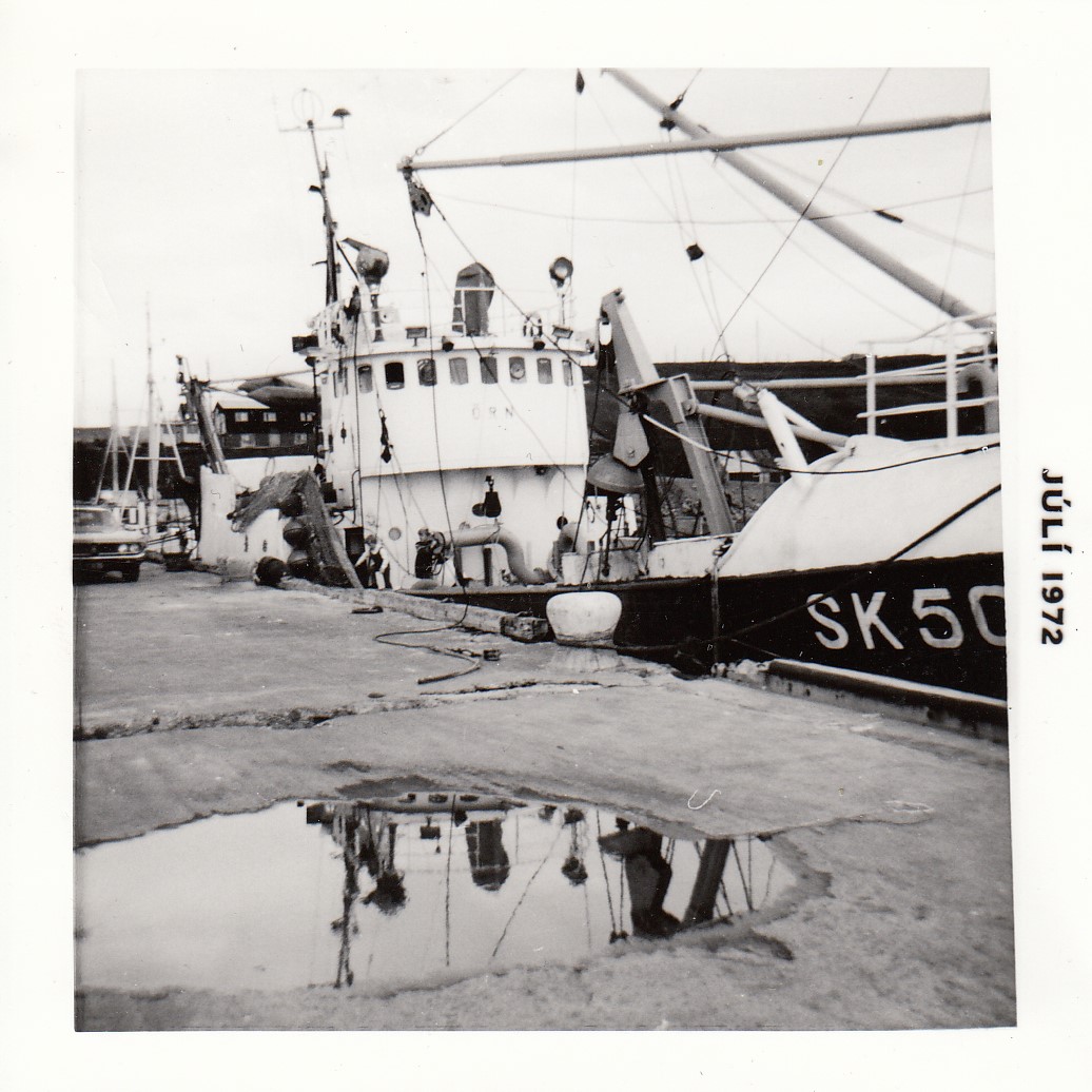 Hér má sjá Örninn við bryggju í þorpinu okkar 1972