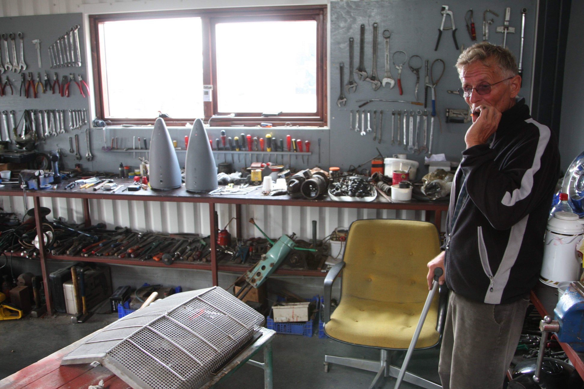 Þessi hefur bjargað sögu gamalla bíla með því að gera þá upp og varðveita hér er Gunni á verkstæðinu.
