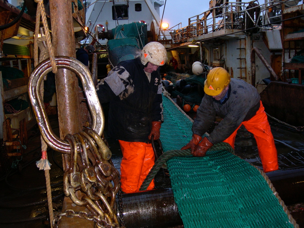 Rækjuveiðar, Sveinn að setja stroffu á belginn
