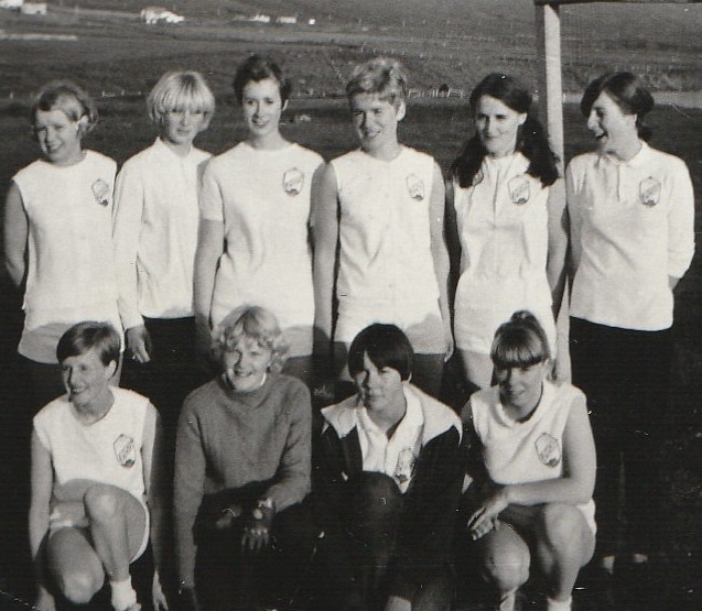 Það var nú ekki bara það að Hofsósingar ættu flesta og bestu knattspyrnumennina í liði UMSS eins og sjá má á síðunni, við áttum líka flestar stelpurnar í sigurliði UMSS kvenna í handbolta á landmóti UMFÍ hérna má sjá okkar bestu, í aftari röðinni eru frá vinstri Fanney Friðbjörnsdóttir, Guðlaug Jónsdóttir, Halldóra ?, Helga Friðbjörnsdóttir, Anna Steinunn Guðmundsdóttir, Kristín Ögmundsdóttir. fremri röð frá vinstri Dóra Þorsteinsdóttir, Þórdís Friðbjörnsdóttir, Guðrún Pálsdóttir, og Sigurlína Björgvinsdóttir. Það má nú segja að við getum verið stoltir þorpsbúar bæði af handboltastelpunum og knattspyrnuliðinu okkar á landsmóti UMFÍ 1968