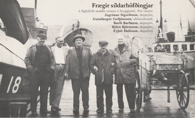 Hér má sjá nokkra síldarhöfðingja þar á meðal Eyþór frænda minn Hallsson skipstjóri. lengst til hægri dæmi um hversu farsæll hann var þá sigldi hann öll stríðsárin með fisk á erlenda markaði.
