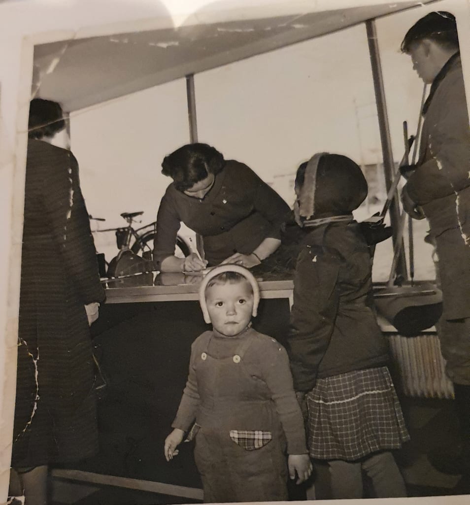 Þessi mynd er tekin á opnunardegi KASH. Kaupfélag Austur Skagfirðinga Hofsósi. Barnið sem horfir í myndavélina er Hanna Nílla, stúlkan sem er aftan við hana sá oft um að passa Hönnu þetta er Dísa Gunnar Sef. og Rósu Sveins. Sú sem er þarna að afgreiða inan við borðið er Margrét Friðriksdóttir alltaf kölluð Dúdda.