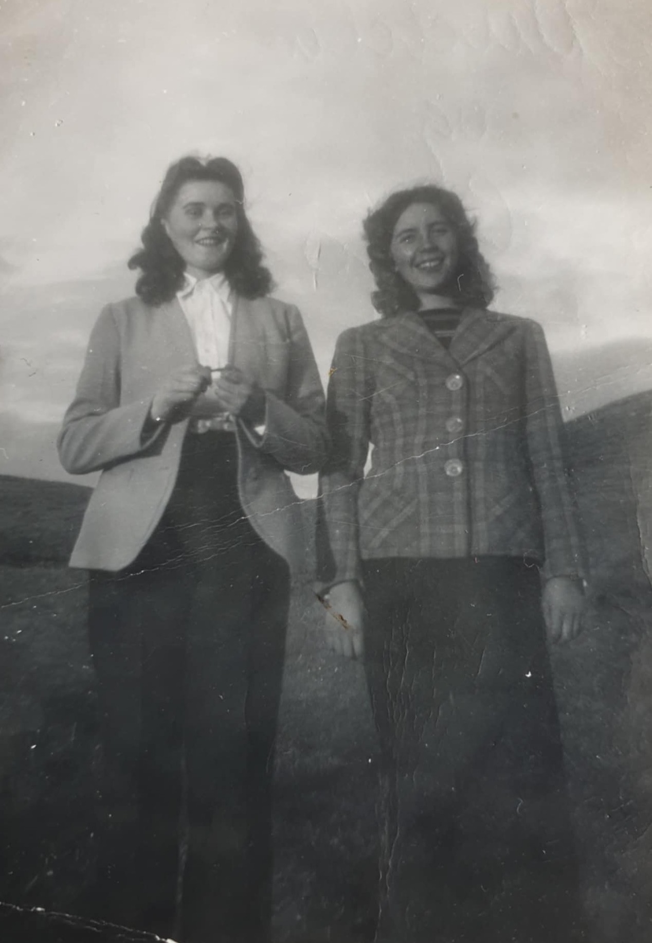 Tvær æskuvinkonur önnur úr þorpinu en hin frá Bæ þetta eru þær Dúdda og Gógó