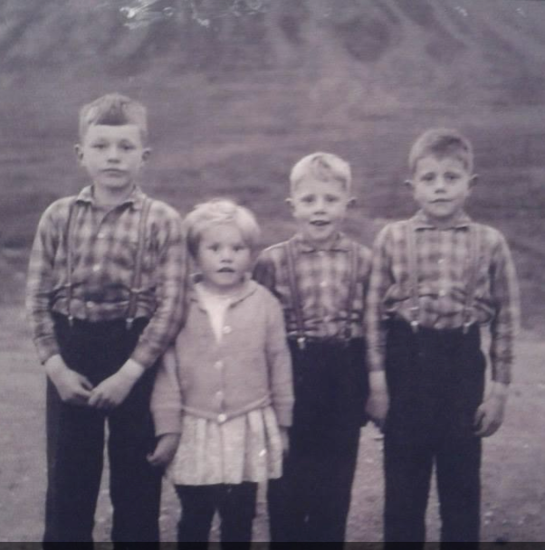 Fjögur elstu systkynin á Mannskahóli Egill, Sigga, Jón og Einar.