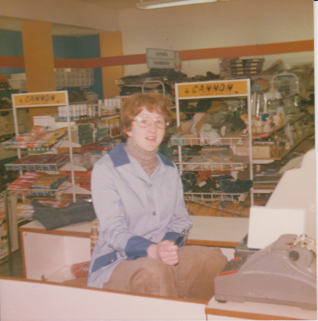 Það er engin örtröð við kassann hjá Guðnýju í kaupfélaginu.