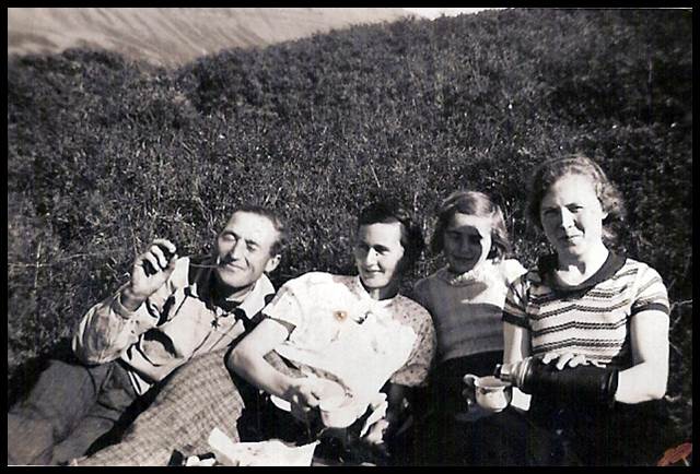 Friðrik Jóns, Guðrún Sigurðardóttir, barn og Lauga Halls