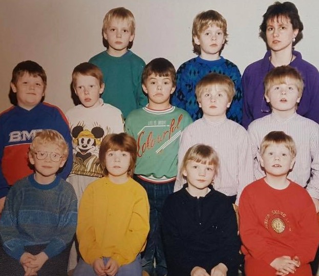 Svandís Ingimundar skólastjóri með nemendum sínum árið ?