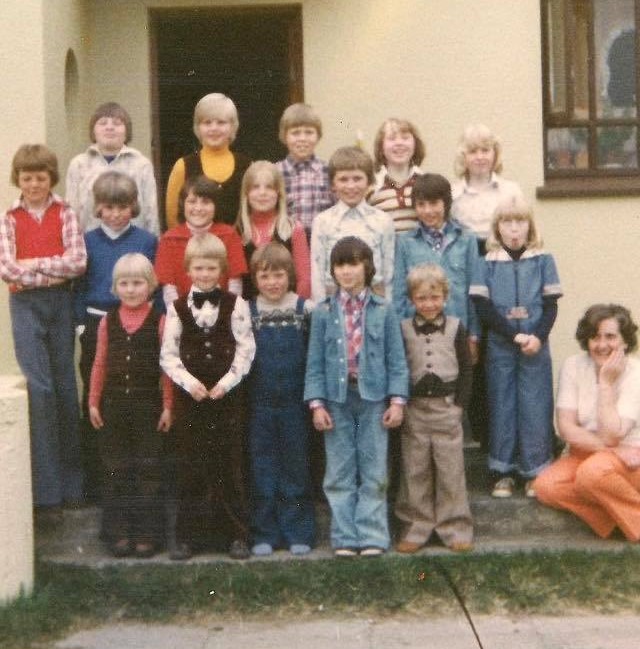 Fermingarveisla í Túngötu 4, nokkuð viss að "gamla" konan lengst til hægri er jafnaldra mín Anna Jóna Snorradóttir. Lengst til vinstri aftast er Guðmundur á Óslandi, óþekktur, Viðar Jónsson, Helga og Þórunn Snorradætur, í miðröð Rögnvaldur Bragi, Ásgeir á Óslandi? Sigurveig í Brekkukoti, óþekkt, Þórir á Óslandi, Sigmundur í Brekkukoti, óþekkt,