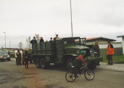 Það þótti að sjálfsögðu tilfallandi að fá Dodda í Stóragerði í verkið með gamla hertrukkinn.