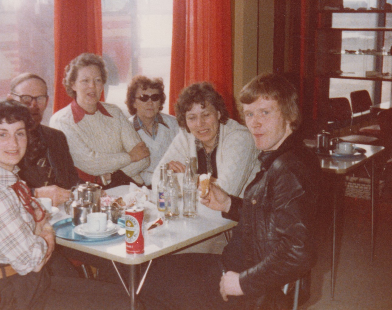 Ekki vitað af hvaða tilefni þessi mynd er tekin en mér sýnist að á henni séu Dísa á Vatnsleysu, Gunni Stef. Lína á Sleitustöðum, Rósa Sveins, Magga á Sleitustöðum og Kristján í Ártúni, kannski er þetta í söngferð með söngfélaginu Hörpunni?