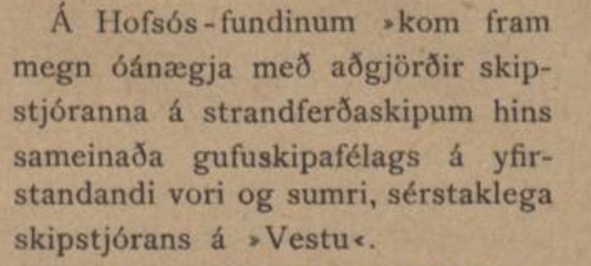 Þorpsbúar hafa haft megna óánæju með gufuskipafélagið en þó sérstaklega með störf skipstjórans á Vestu.
