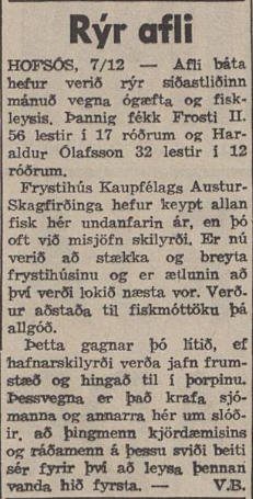 Oft var afli rýr að sögn útgerðarinnar, þetta væri samt góð viðbót og þætti gott ef þetta væri svona í dag.